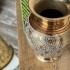 Ваза выполнена из латуни методом ручной чеканки индийскими мастерами. Белая эмаль придаёт изделию нежный, утончённый вид. Форма «бочка» — классика восточной посуды. Украсит гостиную, кабинет или каминную полку.