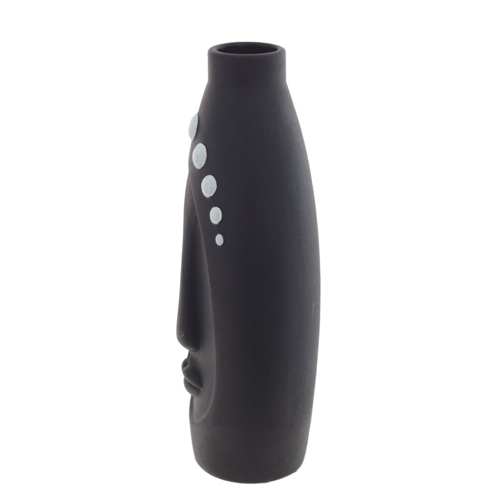 Ваза из керамики, представленная перед нами, является прекрасным образцом оригинального дизайна и качественного исполнения. Ее черный цвет придает ей изысканность и элегантность, а плавные изгибы, отсутствие резких углов и четкие контуры придают ей нежность и грацию, делая ее идеальным дополнением к любому современному декору. Диаметр горлышка: 4 см.