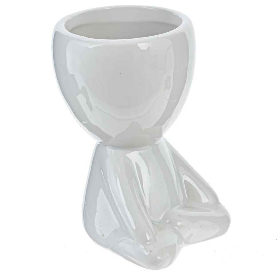 Фарфоровая мини-ваза оригинальной формы в виде сидячего человечка настолько красива, что сможет самостоятельно украсить интерьер и без цветов. Разместите эту модель у себя в доме - и она станет дивным элементом декора. Диаметр горлышка: 6,5 см. Представлена в двух вариантах.