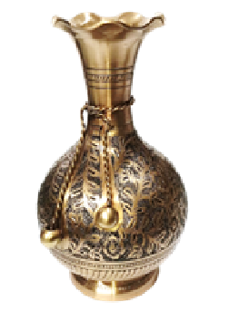Ваза выполнена из латуни методом ручной чеканки индийскими мастерами. Украсит гостиную, кабинет или каминную полку.