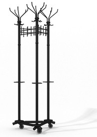 Групповая трёхсекционная вешалка "Millie" на колёсах занимает очень мало места и позволяет организовать хранение большого количества одежды на минимальной площади, обеспечивая доступ к ней, поворачивая её нужной стороной. Она особенно удобна для углового размещения.