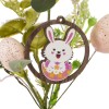 Эта декоративная пасхальная ветка состоит из различных материалов, создающих праздничную и весеннюю атмосферу. В основе композиции – искусственная зелень, выполненная из полимерных материалов, имитирующих листья и мелкие цветы. Также на ветке расположены декоративные яйца нежного пастельного оттенка с краплениями, изготовленные из легкого пластика или пенопласта, что делает композицию легкой и удобной в использовании. Дополнительно украшение содержит вставку в форме круга с изображением симпатичного пасхального кролика. Этот элемент добавляет композиции визуального разнообразия. Такая ветка прекрасно подойдет для украшения интерьера в пасхальный период, создания праздничных букетов и композиций. Благодаря использованию синтетических материалов она долговечна, не требует особого ухода и может использоваться многократно.