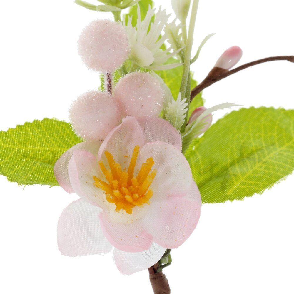 Искусственная ветка «Пасхальная» — нежный весенний акцент для декора дома, праздничного стола и подарочных композиций. На тонком коричневом стебле собраны текстильные листья свежего салатового оттенка, изящные бело?розовые цветы с яркой серединкой и пушистые декоративные шарики, напоминающие почки и соцветия. Ветка выполнена из полимерных и текстильных материалов с металлической основой, что обеспечивает долговечность и позволяет легко придавать нужную форму. Идеально подойдет для оформления пасхальной корзины, композиции с яйцами и свечами, венков и букетов.